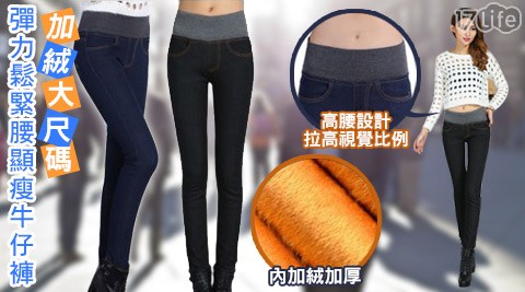 平均每件最低只要339元起(含運)即可購得加絨大尺碼彈力鬆緊腰顯瘦牛仔褲1件/2件/4件/6件,顏色:深藍/黑色,多尺碼任選?